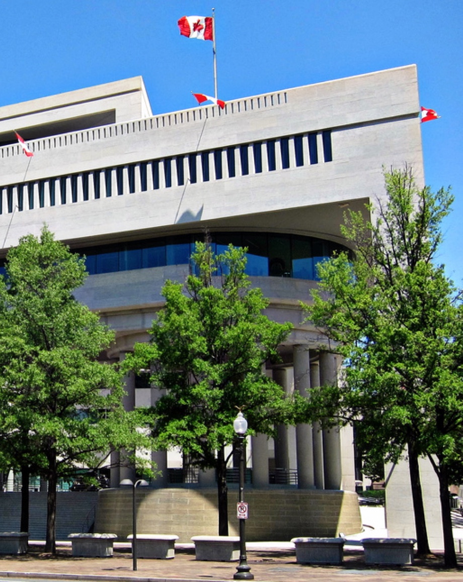 Symbole de la proximité de la relation bilatérale, l’ambassade du Canada est la seule ambassade située sur Pennsylvania Avenue, entre la Maison-Blanche et le Capitole.